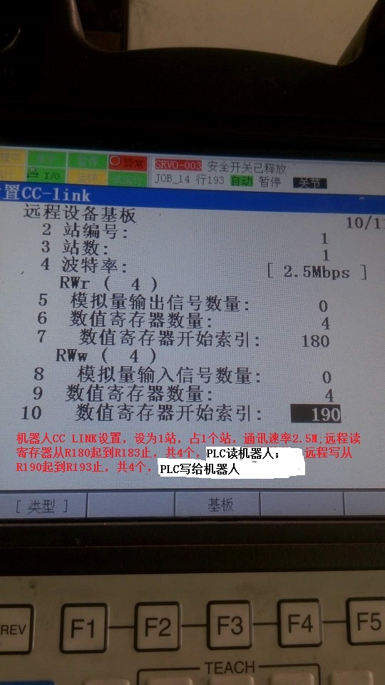 引用引用第1樓anlyl2014于2019-12-07 23:04發(fā)表的 :[attachment=239373] 以FX3U為例,主站設(shè)置,稍后,再說FANUC機(jī)器人那邊如何設(shè)置,及IO配置。特別說明:FX3U PLC掛FX2N_CCLINK_M也可以用此程序 [attachment=239379] 機(jī)器人的CCLINK設(shè)置, 這是設(shè)為1個(gè)站的設(shè)置,要跟PLC設(shè)置相同。