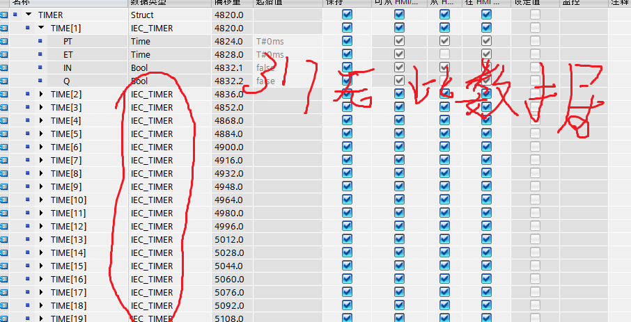 2.關(guān)于計時器的使用,原程序(1500)中有ICE_TIMER數(shù)據(jù)類型,可以在DB中隨意使用多個計時器,現(xiàn)換為300的,沒有ICE_TIMER數(shù)據(jù)類型,一調(diào)用TON需要單獨一個DB塊。