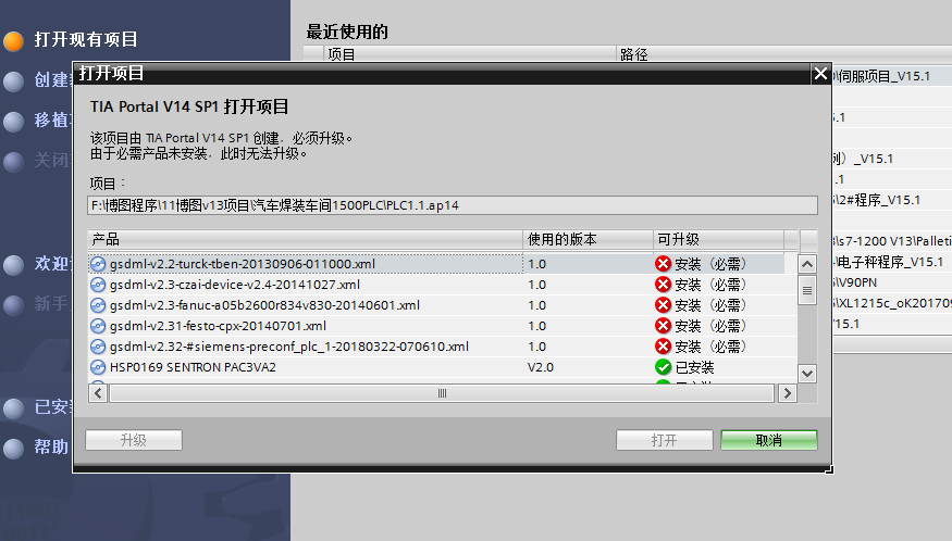 以前在網(wǎng)上下了個(gè)博途v14程序。當(dāng)時(shí)自己電腦正好安裝的博途v14軟件。雖然有顯示幾個(gè)GSD文件沒(méi)有安裝,但程序能打開(kāi)。