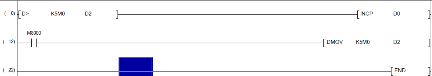 2.比較法,就之前我寫給你參考的那種,當然,你要的只是上升沿有效,只選擇大于的情況是對的;要注意的是:比較法剛好與FOR循環剛好相反,M0-M19要一直實時給信號;