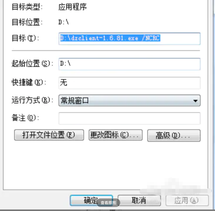 2.右鍵點擊快捷方式,單擊屬性,在目標欄中的目標后按一個空格后輸入 /NCRC,最后,運行快捷方式就可以安裝了。