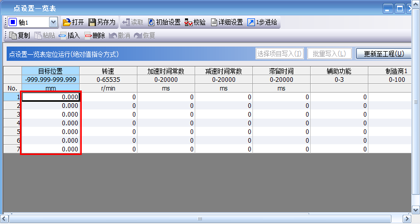 如果是Q系列的話定位模塊里面   定位數據里設置運行模式為軌跡,每個定位編號NO里面就可以設置不同速度,最后一個編號NO設為結束,這樣就實現多段速中間不停止。