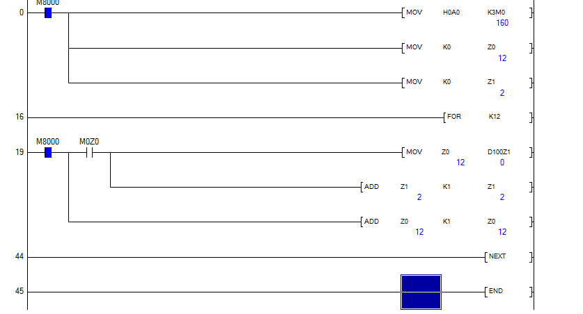 假設在 M0~M11中, 只有M5,M6是ON, 其余都是OFF.  然后利用FOR指令快速找出來嗎。或者找到已經ON的M,
