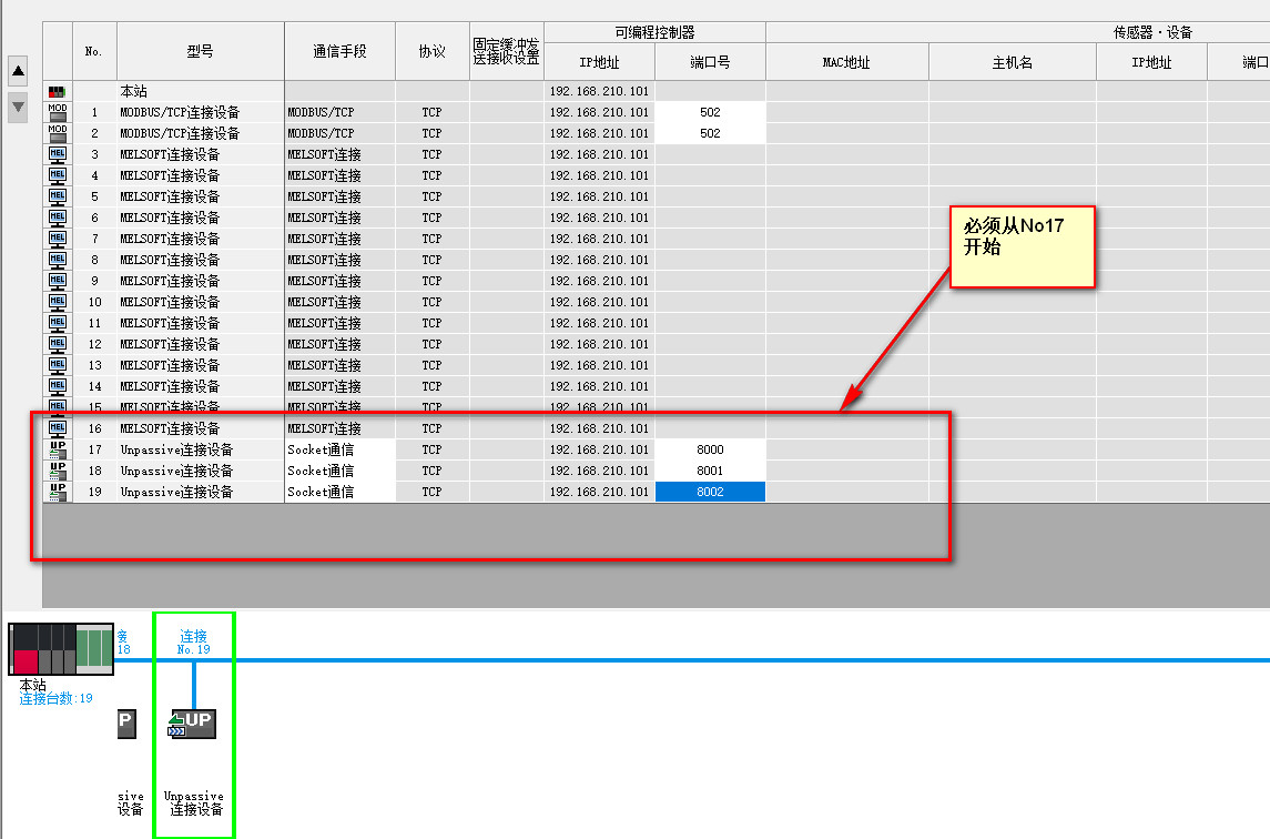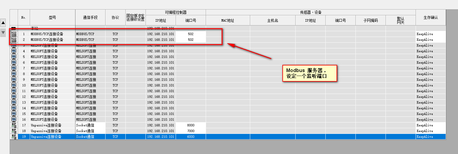 然后還設定了一個MELSOFT設備,這個是可以連接三菱的觸摸屏的