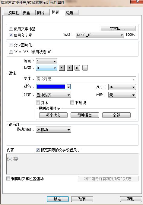 使用“使用文字庫”選擇的文字只能是狀態“0”顯示,而狀態“1”不能顯示。