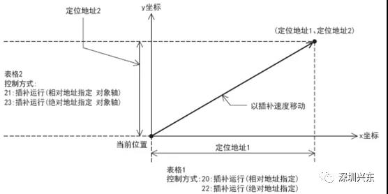 FX5U本體有4個點可以用來進行軸定位,支持任意兩軸的簡易直線插補。此插補功能是通過表格運行指令,以指定的矢量速度,向目標位置移動。CPU模塊以表格中設定的定位地址和指令速度為基礎進行計算,配合2軸動作。