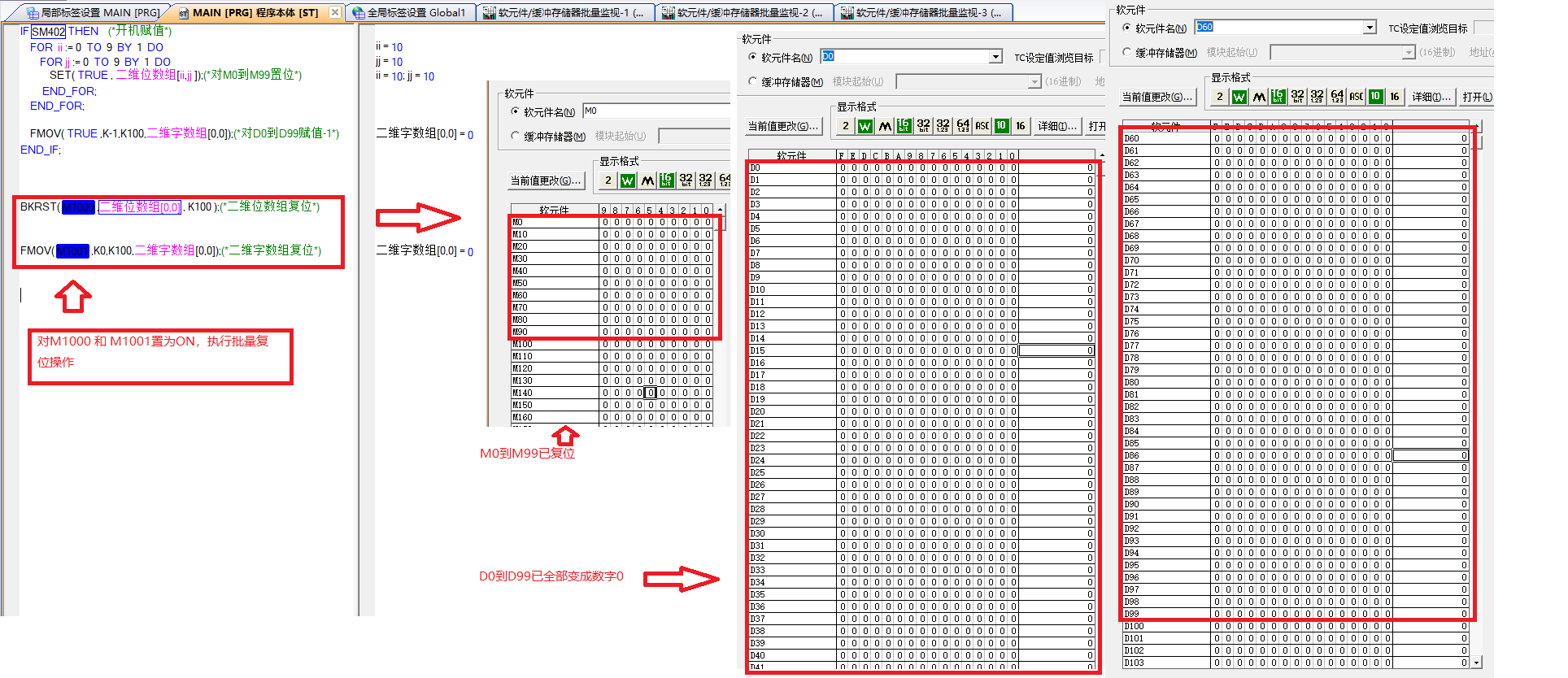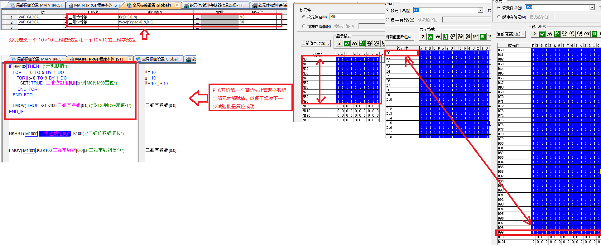 三菱plc二維數組 一下子 怎么全部復位
