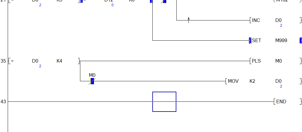 = D0 K2 與= D0 K3這兩個條件在同一周期是同為TRUE,= D0 K2并不是斷開的,如果這一個周期又將D0 減為2,則下一周期的MOVP K3 D11這動作就失效了