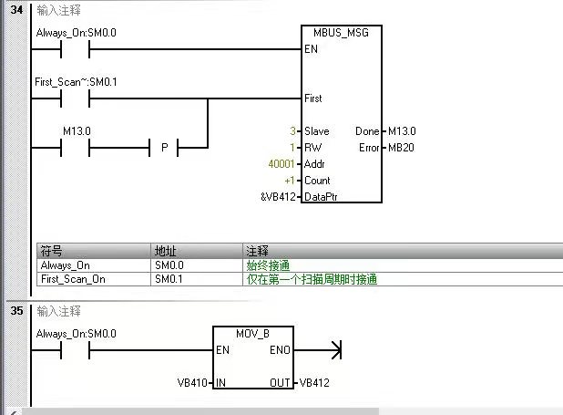 請教各位大神,我做了一個s7200 smart 與單片機通訊的程序,想通過plc來控制單片機那邊設備的啟停,如下圖,在測試的時候,中繼M13的觸點在不斷的通斷閃爍,表明已經通訊上了,但是就是不能寫入數據1,請各位大神指點一下!那個&vb411里顯示的16#0800019B是什么意思?