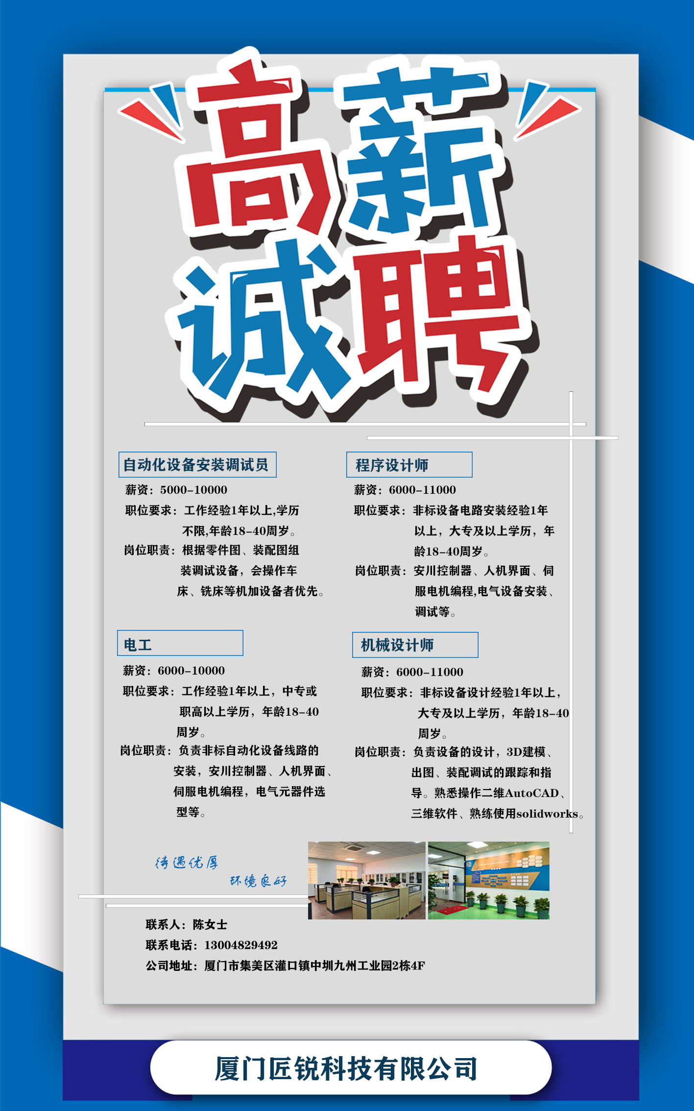 如題所示,有經驗或是應屆畢業生都可,有興趣的聯系18850275722 陳先生