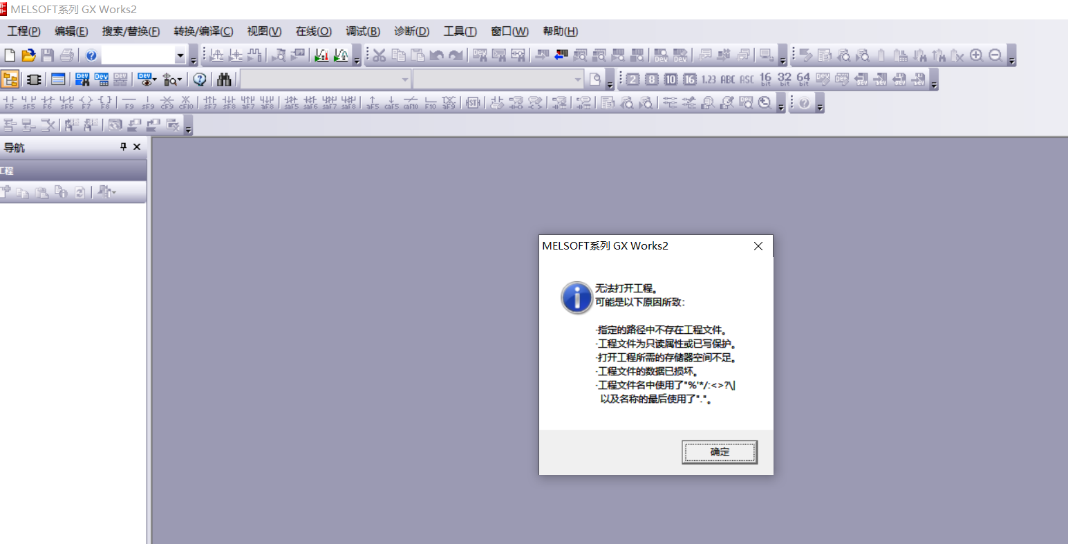 有大師知道打開GX WORK2出現的報警情況怎么處理呢,工程是否已經損壞了呢?