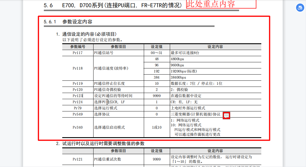 PLC與變頻器通信參數(shù)設(shè)置一致,程序中接通中間繼電器,通信專用指令能執(zhí)行,指令執(zhí)行完后,m8029也接通了,硬件上通信模塊SD也會(huì)閃爍;RD一直沒(méi)不閃爍過(guò)