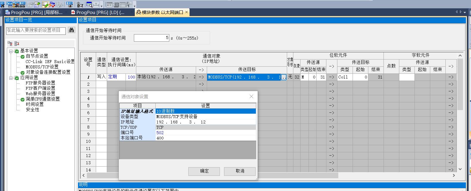 FX5U通過交換機和MODBUS-TCP擴展模塊通訊,用昆侖通泰的觸摸屏可以控制。