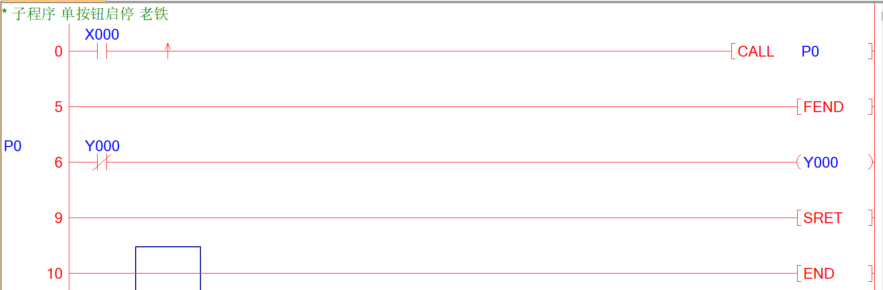 子程序調用執行,不調用不執行,可嵌套調用,嵌套最多5層,編寫子程序時先使用FEND結束主程序,子程序完成要寫返回指令SRET。