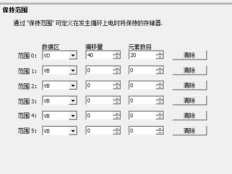 VD0要停電保持  你設(shè)置的是VD40開始連續(xù)20雙字 設(shè)置完成下載到PLC生效。