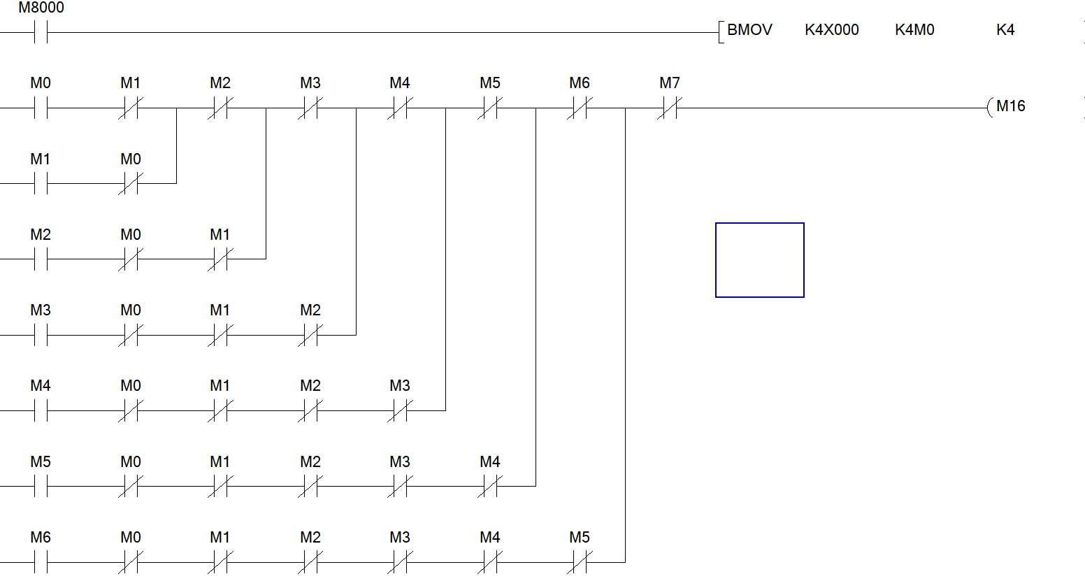 求教一下,,這段程序有沒有別的方法可以更簡單一點的。本人新學三菱PLC。16個信號不能同時有兩個或以上的輸入