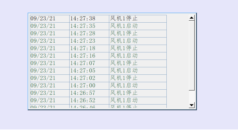 這個就是用威綸觸摸屏用事情顯示元件做出來的,不需要PLC寫程序,但是它只能保存15天的數據記錄,如果是需要記錄更多的數據記錄,可能就需要在PLC里記錄數據了,
