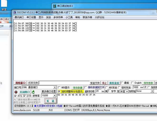 讀取D123  D124兩個寄存器的當(dāng)前值:02 30 31 30 46 36 30 34  03 37 37。