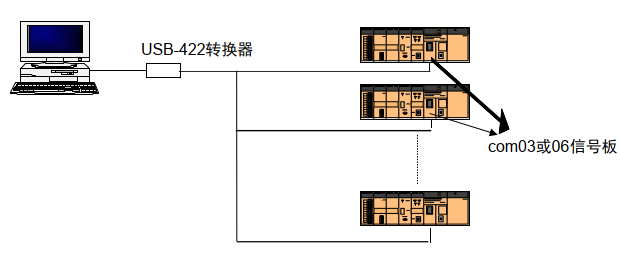 樓上兩位說的都對。232不支持1:N方式,422支持。可以增加com03或06的信號板。今天查了些資料,試了一下,一臺電腦與多臺PLC通過host link通信,走422。多臺PLC的422口并聯(lián)到一起,再接到USB-422轉(zhuǎn)換器,直接插電腦U口。網(wǎng)絡(luò)里面的PLC通過給不同的單元號來區(qū)分。