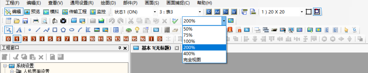 PROFACE 軟件的視圖放大比例有沒有150%可以設(shè)定的,如圖,我想100%太小,200%又太大了