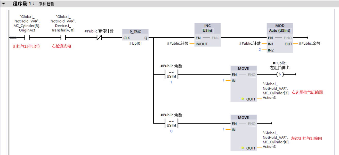 但現在執行時還是有些問題,比如當來料的間隔比較小時,右邊放行的“已加工”物料還沒有通過左邊機構,就會觸發左邊重復加工的問題。