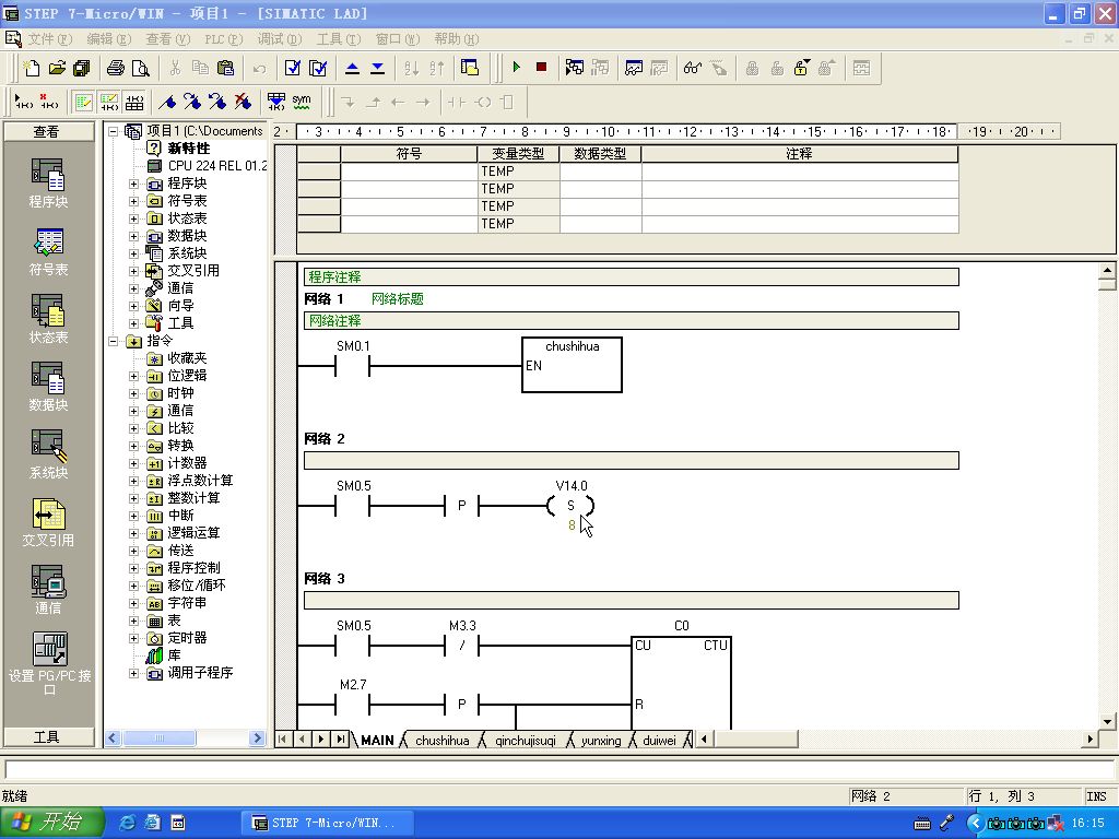問題三:V14.0有置位沒復(fù)位可能是程序里控制需要這樣,鼠標(biāo)那個8表示前面的條件一次置V14.0~V14.7這8個位