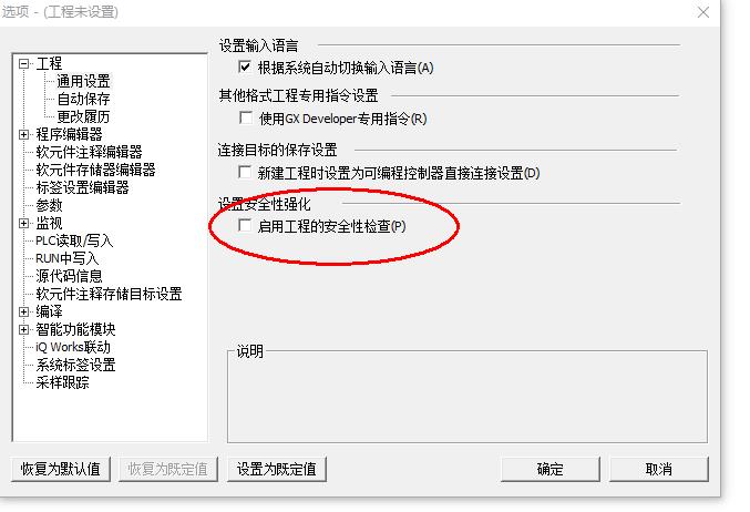 話說高版本的GX WORKS2每次關閉都跳出提示要使用者設置安全保密的對話框.感覺畫蛇添足.