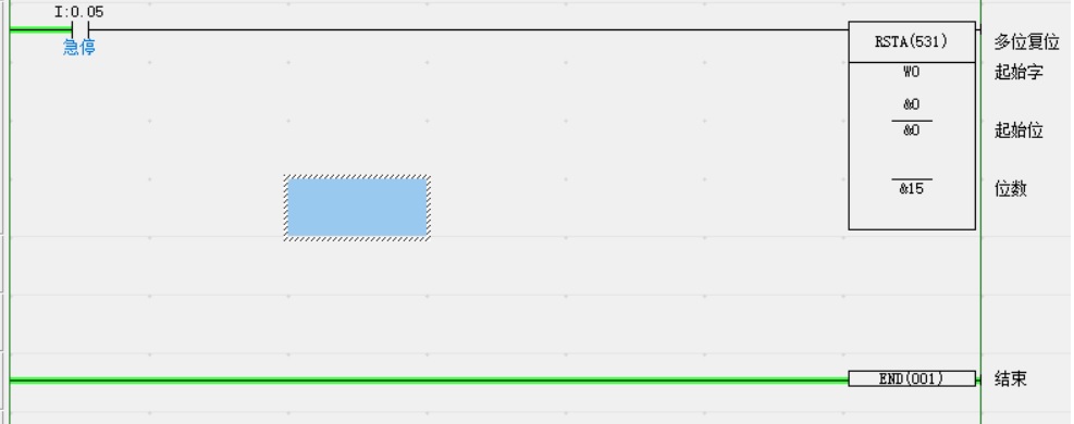 歐姆龍手冊(cè)上多位復(fù)位RSTA的用法,只針對(duì)輸入或輸出繼電器做了例子,要對(duì)內(nèi)部繼電器進(jìn)行多位復(fù)位,和手冊(cè)上的例程有點(diǎn)不一樣,D起始字指定W0,N1起始位設(shè)定&0,N2位數(shù)設(shè)定&15,即從內(nèi)部繼電器W0的0.00開(kāi)始往高位15個(gè)位數(shù)復(fù)位。