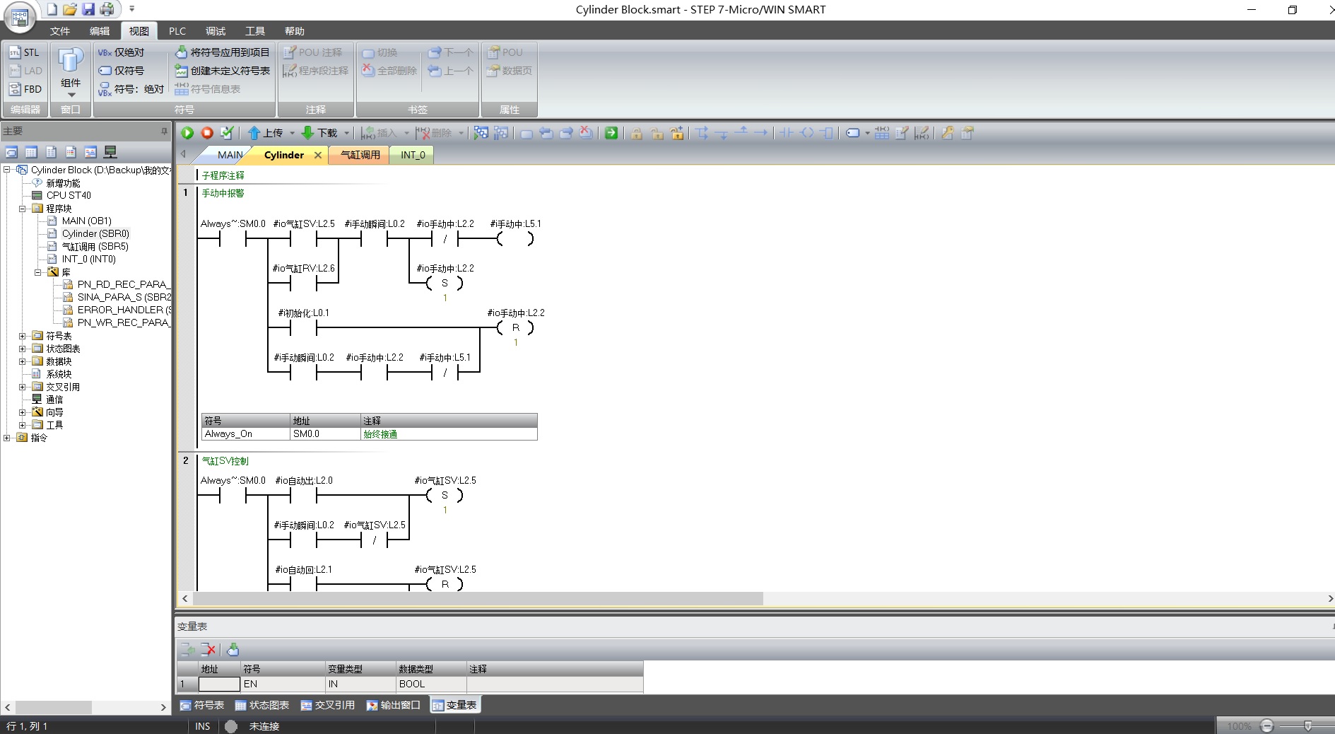 工程用到西門子SMART的PLC,在網上看到大師“滬A林工”自建氣缸模塊的教程,于是自己就著視頻做了個氣缸塊,還是挺實用的。