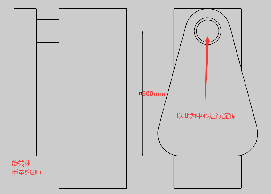 這個旋轉體是偏中心600mm左右進行旋轉且轉速是每分鐘10轉.