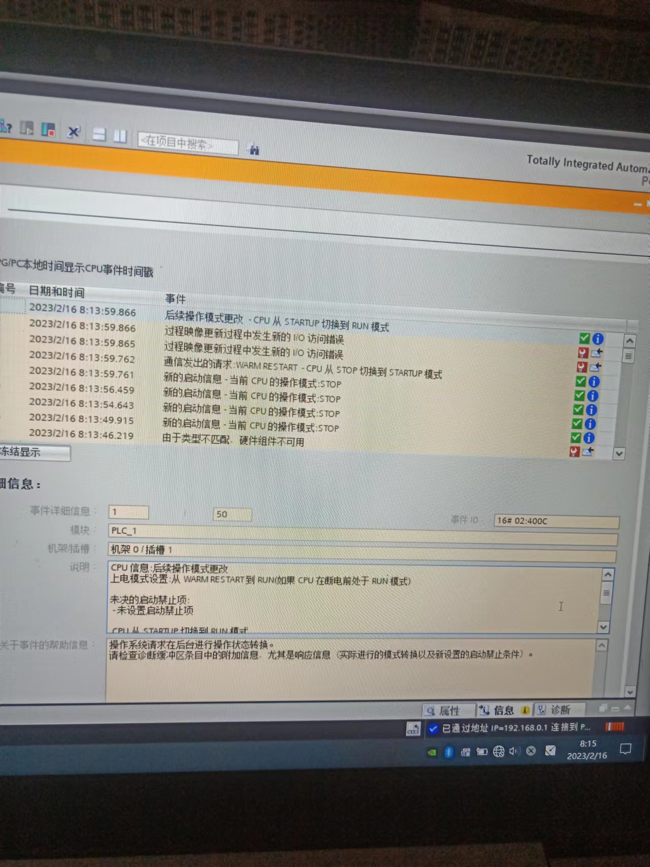 CPU 錯誤:過程映像更新過程中發生新的 I/O 訪問錯誤