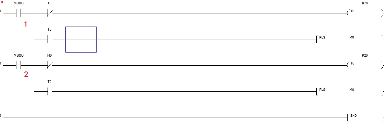 如下圖,按照”從上到下,從左到右“掃描的原理分析,梯級(jí)1,2的M0應(yīng)該都能觸發(fā)的啊,但是實(shí)際上是使用2的比較穩(wěn)妥,而梯級(jí)1的有時(shí)候就觸發(fā)不了。這是什么原因呢?謝謝各位網(wǎng)友評(píng)論!~ ![]() |