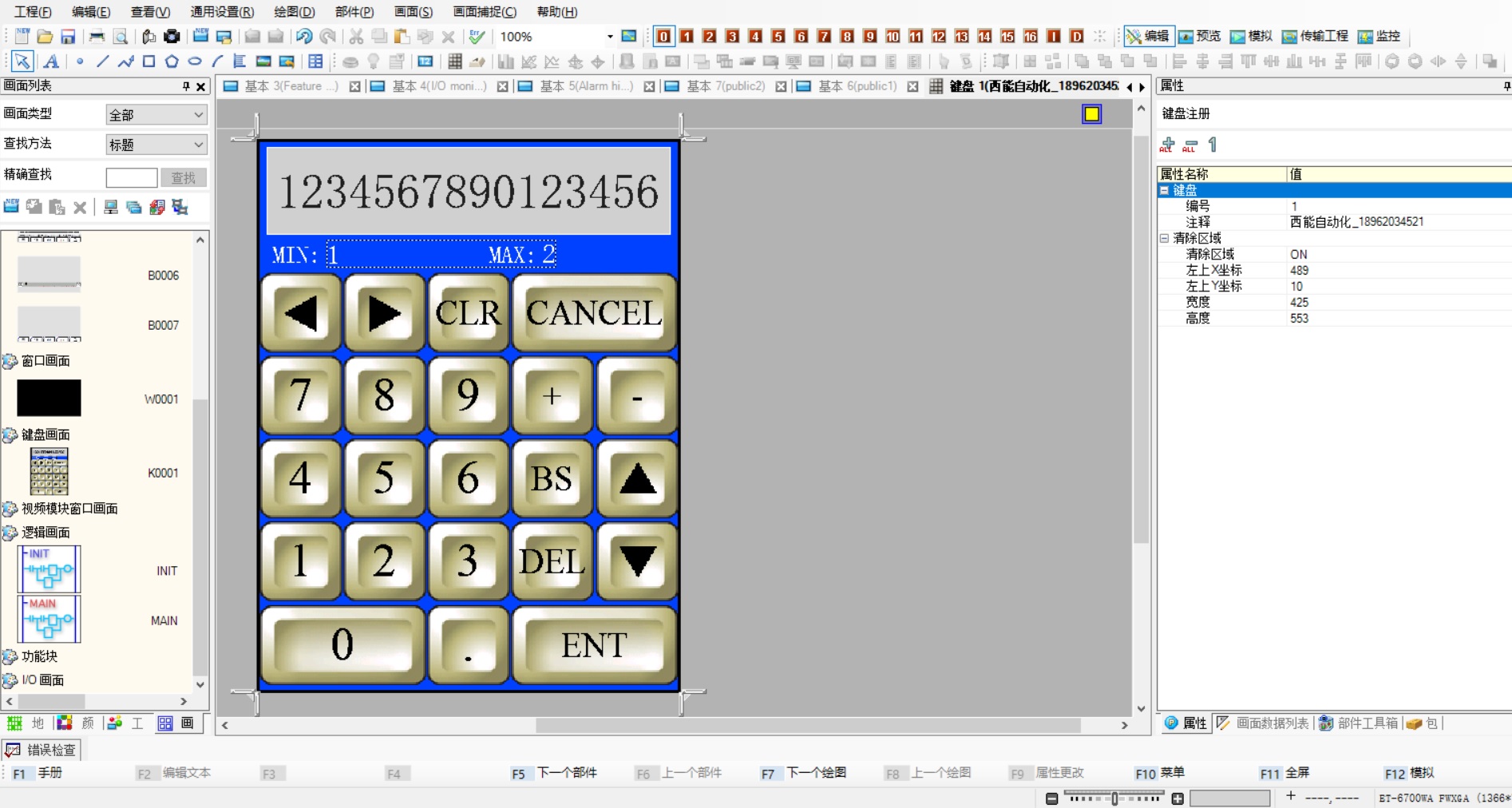 畫面列表下有一項“鍵盤畫面”,可以自己新建一個。然后在“數(shù)據(jù)顯示器”內(nèi)選“數(shù)據(jù)輸入”頁,選中“啟用彈出鍵盤”,選中使用鍵盤畫面,畫面號就是自建鍵盤畫面的編號,一般只建1個編號為1。
