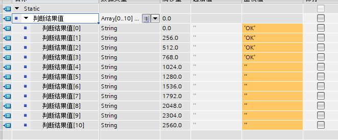 IF "數據塊_1".判斷結果值[#i] <> 'OK' THEN