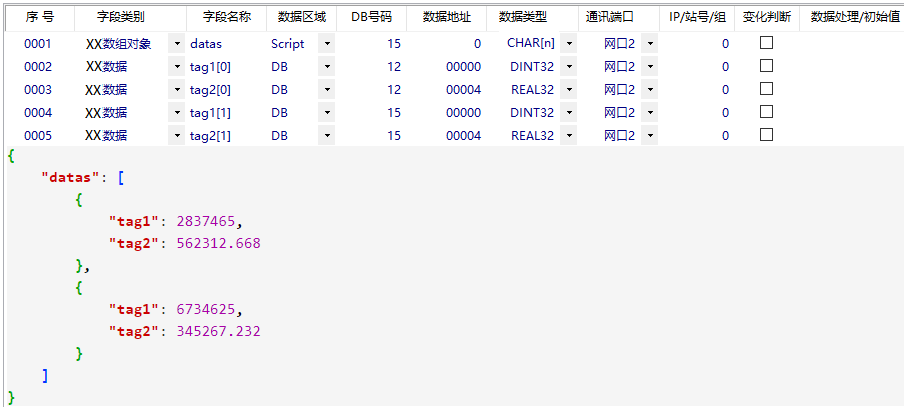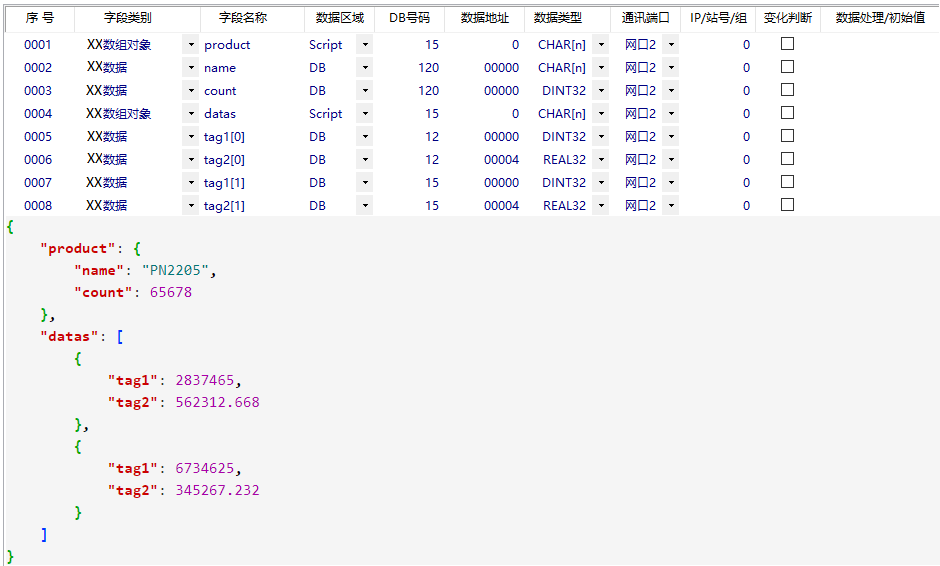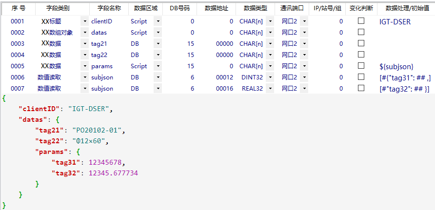 以下是數據配置表自動生成的JSON文件的對應。JSON文件內的數據可以自由增減,字符可自由修改,舉例只是為了描述各種JSON文件的結構實現。MQTT協議的發布/訂閱也是同樣的對應方式。具體如下: