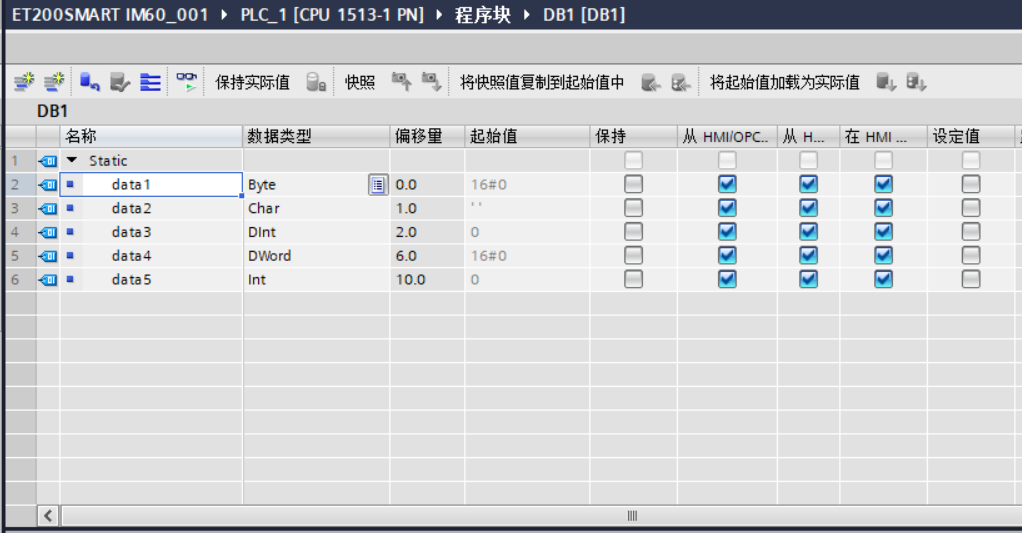 "現在用博途V18建了一個S7-1513,寫好程序后用S7-PLCSIM Advanced V5.0來進行仿真,把WinCC運行起來后,WinCC變量連接和PLC的是正常的,但是這個時候上傳AS符號時,只能看到I點和Q點的信號,一個DB塊也不顯示,PLC那邊設置時: