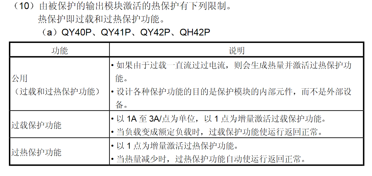 三菱的晶體管輸出模塊熱保護文字說明是嘛意思?