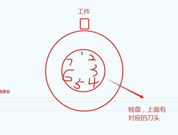 你的意思大概是這樣吧,數(shù)控銑床一樣,想要什么刀,自動找到旋轉(zhuǎn)到位