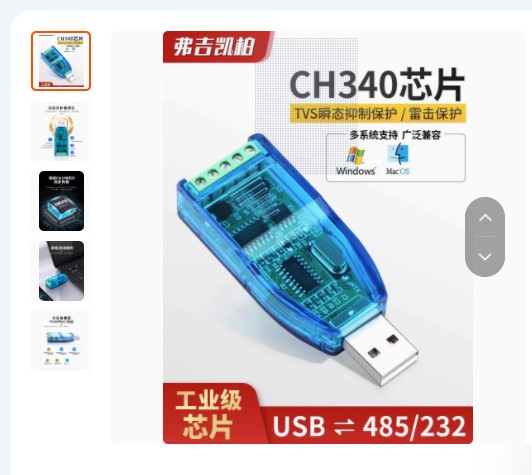這種幾塊錢一個,不好用啊,內部用的CH340+MAX485芯片,有時候一下就壞了,可能是我運氣不好,后面換宇泰的七八十塊錢一個,一直不壞
