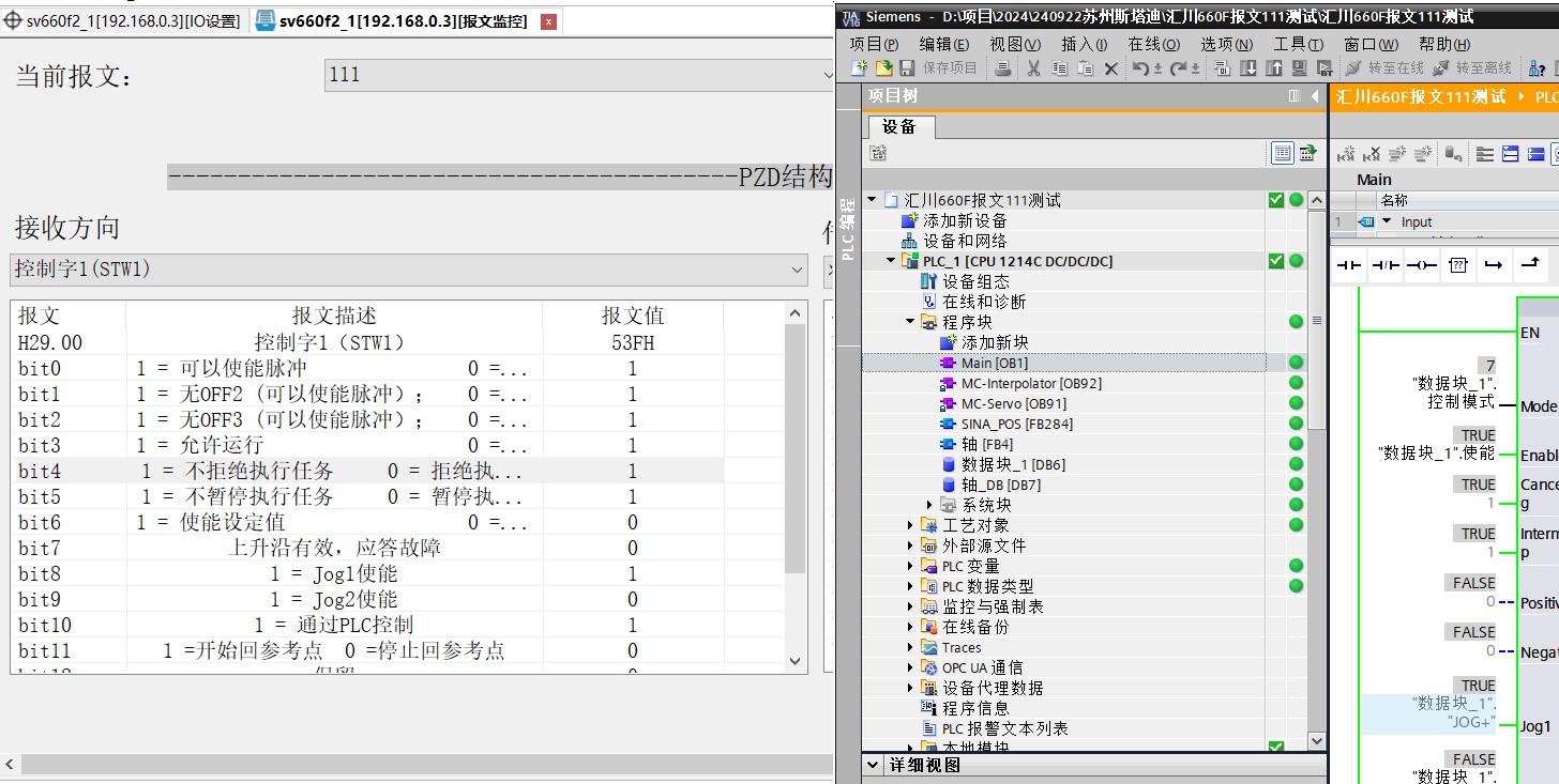 1200匯川660F伺服   用報文3可以正常使用   用報文111的話就只能使能    JOG和定位指令都不起作用   模式給的也沒問題    功能塊沒有報錯  ,