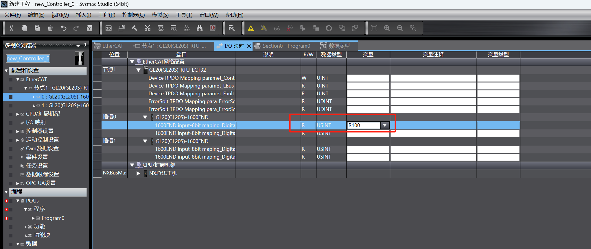 在GL20--ECAT里面配置上模塊,模塊右邊有個PDO映射,編輯一下就好了