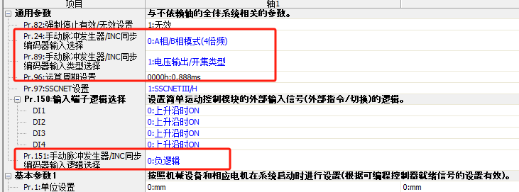手搖輪輸入是集電極開路型,雙脈沖輸入,模塊設置:PR24=0(AB相4倍頻)PR89=1(電壓輸出),PR151=1(正邏輯);電機本身是沒問題的,手搖輪控制的時候就來回轉的感覺,導致抖的很厲害,有人·遇到過的嗎?