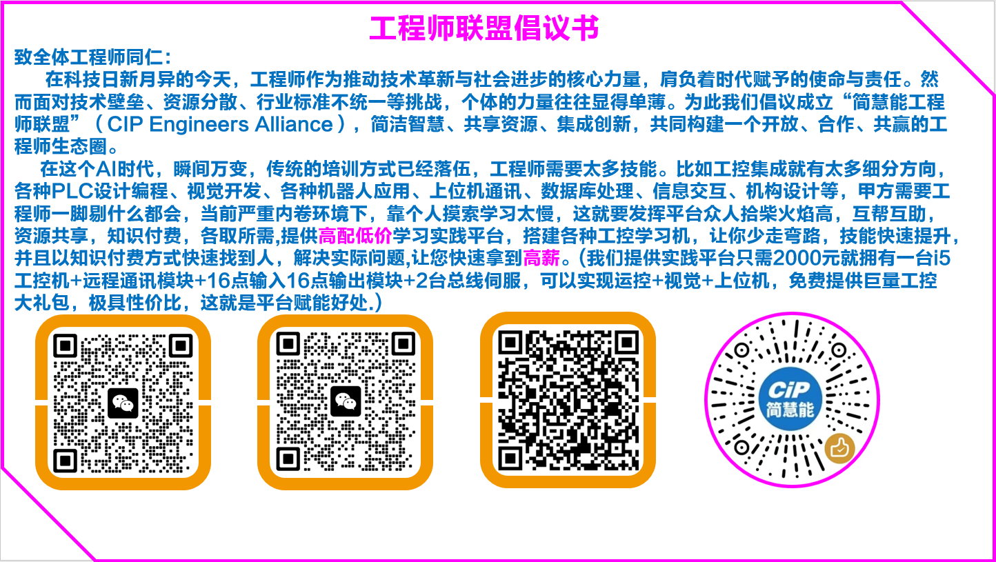 在科技日新月異的今天,工程師作為推動技術革新與社會進步的核心力量,肩負著時代賦予的使命與責任。然而面對技術壁壘、資源分散、行業標準不統一等挑戰,個體的力量往往顯得單薄。為此我們倡議成立“簡慧能工程師聯盟”(CIP Engineers Alliance),簡潔智慧、共享資源、集成創新,共同構建一個開放、合作、共贏的工程師生態圈。