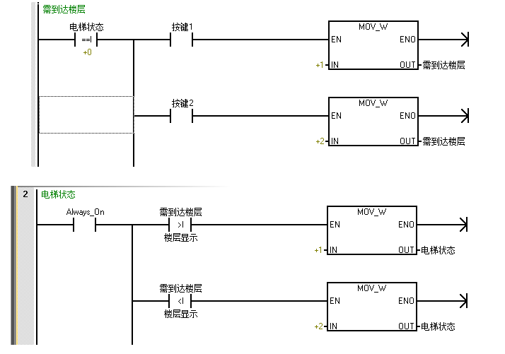 這個電梯確實很簡單,也很小。比農村的簡易三腳架加一個絞盤復雜不了多少。但是它是需要程序來控制它往復在各個樓層之間的,讓我們來看一下IO點位吧。先看輸入:1-5層輸入按鈕,1-5層的樓層限位,還有手自動和急停的功能。再看輸出:上升驅動(油泵),下降控制(閥門),上下箭頭指示和樓層顯示。模擬量部分沒有。再說程序部分:程序量本來不大,但是都講的話篇幅應該還是很長的。所以直說核心部分吧。我們先定義兩個字符來存儲信息,一個是當前樓層,另一個是需要到達樓層。當前樓層信息由限位給出,并保持到下一個限位出現。需要到達樓層信息由外呼板給出,按下幾樓就保存下來需要到達樓層。再進行比較,需到樓層大于實際樓層;則電梯上升,反之則下降。那電梯主功能就完成了。然后把必要的限制和報警加一下,最后寫一下箭頭指示燈和樓層顯示的輸出即可。我這一番流水賬般的描述相信各位看官應該都看懂了啊(捂嘴)。