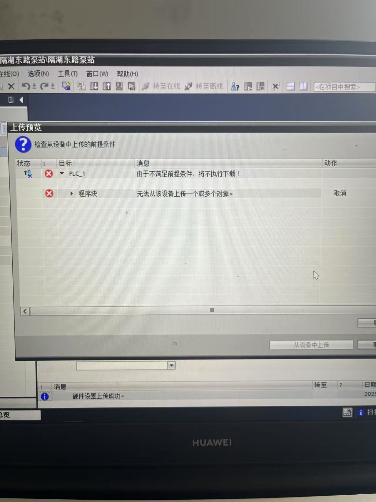 公司有好幾臺(tái)1200的設(shè)備在上傳程序時(shí)會(huì)出現(xiàn) 提示 “由于不滿足條件將不執(zhí)行下載” “無(wú)法從該設(shè)備上傳一個(gè)或多個(gè)對(duì)象”。不知是什么問(wèn)題,想請(qǐng)教該如何解決?問(wèn)題是手上沒(méi)有源程序。