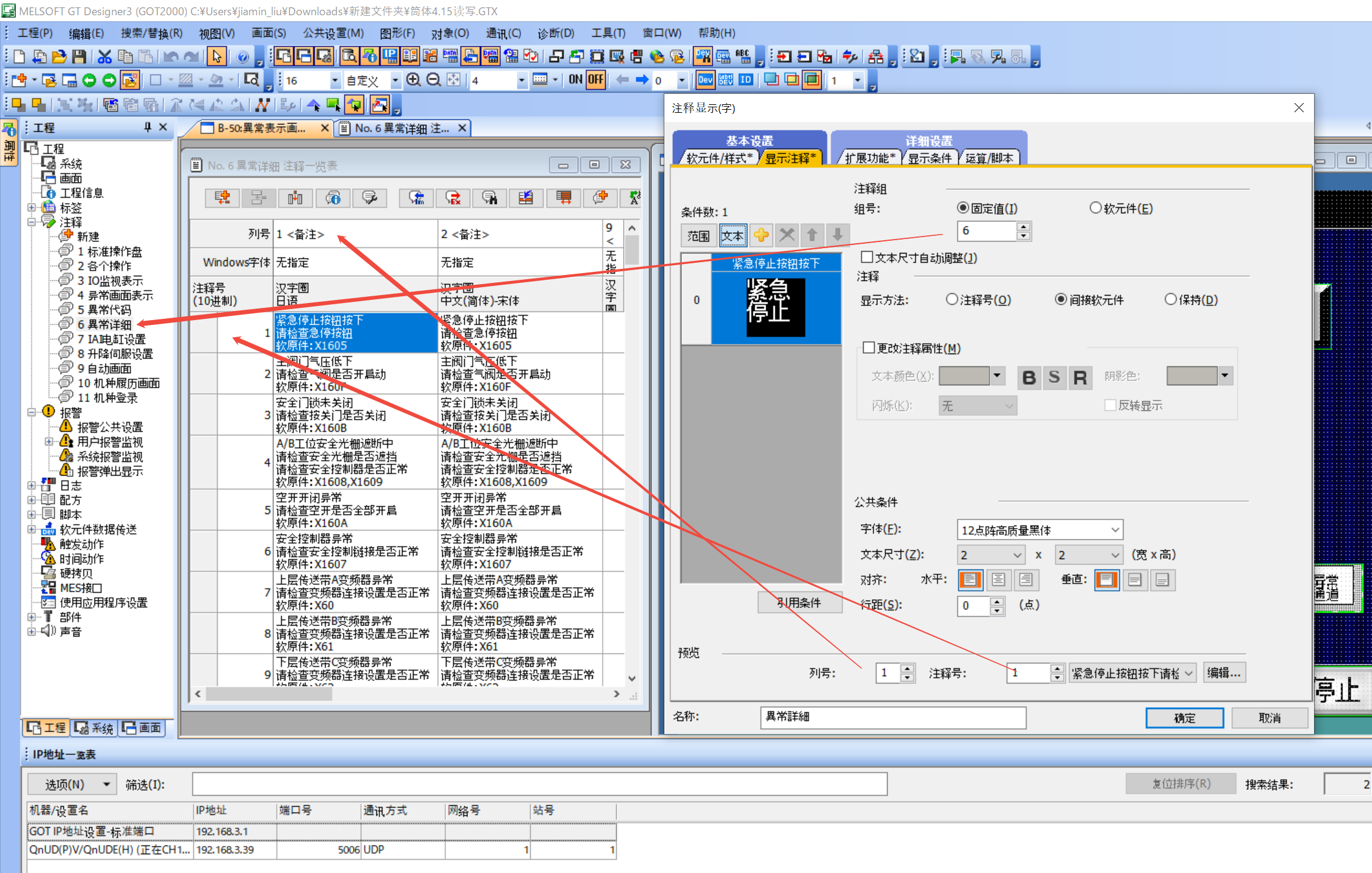 引用引用樓主2645855946于2025-04-22 22:35發表的 觸摸屏畫面顯示問題 :觸摸屏是三菱GOT2000的,程序里面就這一個位置提到了W1B(圖片1);人機畫面就這一頁提到了W1B(圖片2),不知道報警內容在哪里編輯上去的,報警內容隨著報警更新,是會變的。圖片3-7是點開紅色文字的屬性內容