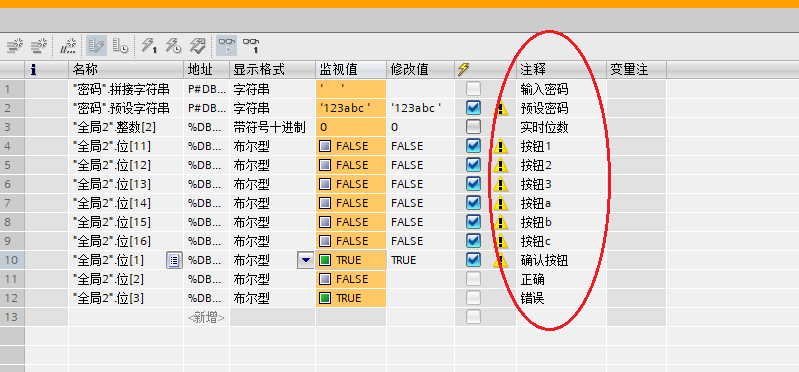 字符串由多個(gè)字符組成,每個(gè)字符占1個(gè)字節(jié);一般以ASCII碼形式存儲,可以存儲字母、數(shù)字和常見符號等。而字符串在我們DB中占據(jù)的空間還不小,默認(rèn)有256個(gè)字節(jié)。它理論可以存256個(gè)字符(其實(shí)有2個(gè)是用來存長度和數(shù)量的)。類比我們每個(gè)漢字是占2個(gè)字符的,如果你名字是三個(gè)字,存到里面占6個(gè)字節(jié)。但是博途中不提倡用漢語,如果工程中用字符串存儲,最好用英文,這一點(diǎn)知曉就行。