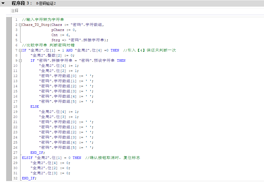 特別注意2:本例不允許輸入超過6位密碼。如果一直輸入的話會復(fù)寫第6位密碼。因?yàn)閷?shí)時(shí)輸入的密碼是保存在一個(gè)6個(gè)字符的數(shù)組中。做限制是為了防止溢出錯(cuò)誤。如果需要更多位的話再擴(kuò)大數(shù)組就可以。
