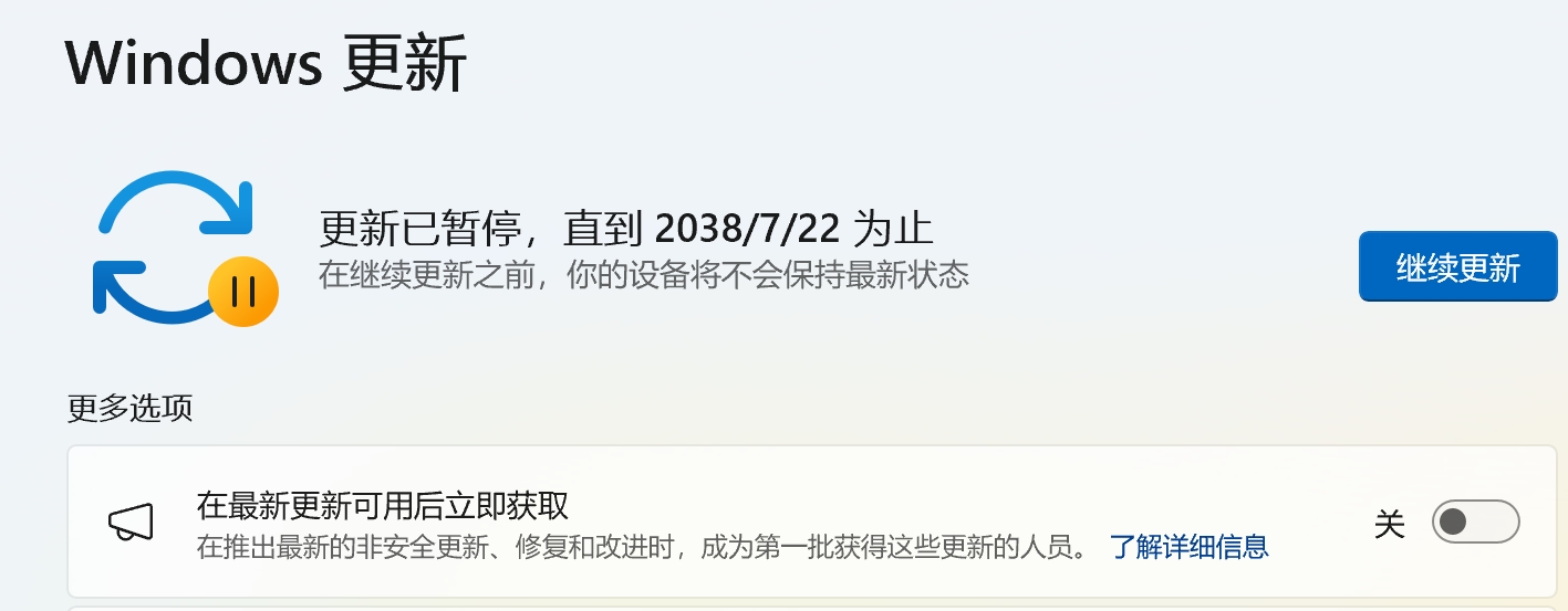 引用引用第6樓yangneet于2025-05-21 09:59發(fā)表的 :我也是同樣問題,按樓主方法解決了,一氣之下,把windows更新搞到2035年。