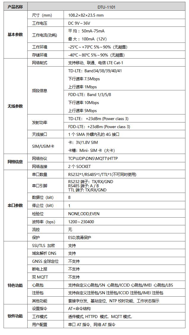 DTU-1101是為實現串口設備與網絡服務器,通過LTE CAT-1網絡相互傳輸數據而開發的產品,用戶只需通過簡單的設置,即可實現串口到網絡的雙向數據透明傳輸;設備支持多種網絡協議,包括網絡透傳模式、MQTT 模式和HTTPD模式,用戶可以根據實際需求選擇合適的通信方式。在網絡透傳透傳模式下,用戶可以配置連接到云平臺,實現數據的快速傳輸。而MQTT透傳模式則提供了通用MQTT連接服務器的數據透傳和分發功能,同時支持MQTT服務器的SSL/TLS加密,確保數據傳輸的安全性。